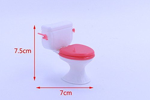 -. Feature : Mini Bath Room Accessories - Toilet. / Make your dollhouse come alive with this dollhouse furniture set toy. / Material: Plastic. / Color: As Shown. / Suitable for Barbie dolls.