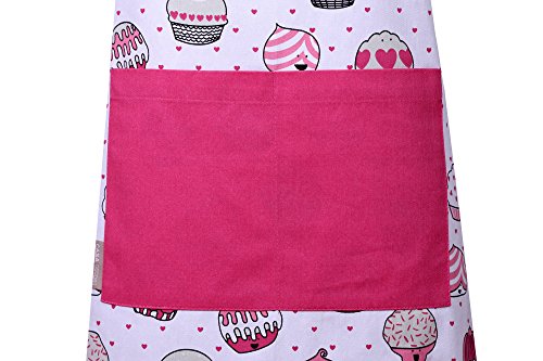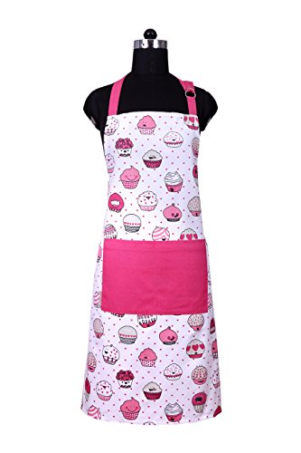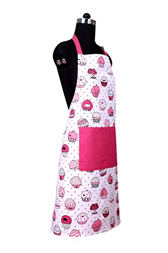 Apron, Valentine Cup Cakes Design, Aprons for Women with Pockets, 100% Natural Cotton, Eco-Friendly & Safe, Adjustable Neck & Waist ties, Machine Washable, Cute Apron by CASA DECORS