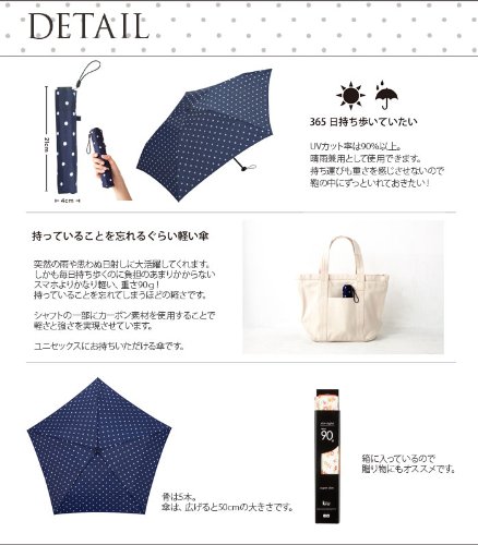 -. Feature : 【生地素材】ポリエステル100%●親骨:カーボン 中棒:アルミニウム 手元:ABS樹脂 / 【サイズ】●全長:47cm 直径:78cm 親骨の長さ:50cm ●収納時:4×21cm / 【重さ】約90g / 【仕様】手動 / 【生産国】中国