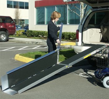 Studio : EZ-Access Publisher : EZ-Access Binding : Health and Beauty Product Description The EZ-ACCESS TRIFOLD≪ Ramp offers the length required for wheelchairs or scooters to access vans and minivans with ease. The unique 3-fold design provides the compact storability and portability previously available only in smaller ramps. This lightweight ramp is made of aluminum and features nonskid driving surface and built-in carrying handles. The ramp separates into two lightweight sections by removal of pins for easier handling. The ramp unfolds to a 29? wide platform and features an 800-pound weight capacity. Optional Top Lip Extension (TLE) allows the ramp to clear the rear bumper of SUVs and vans. 0