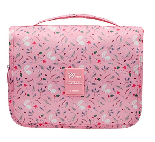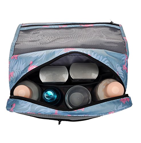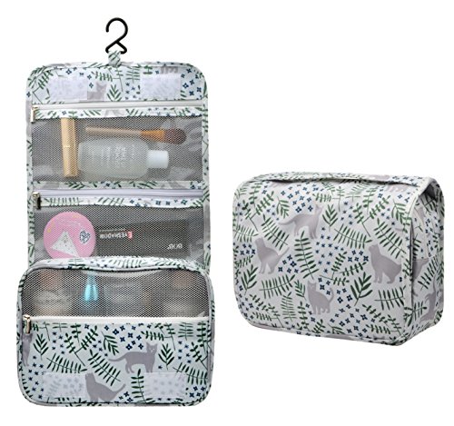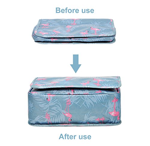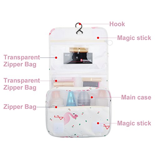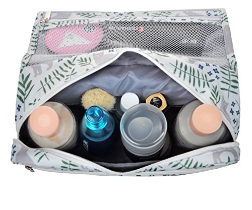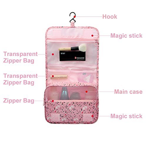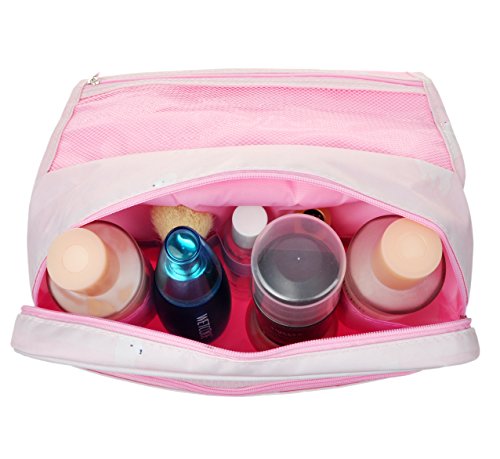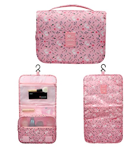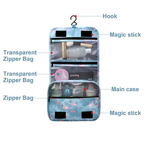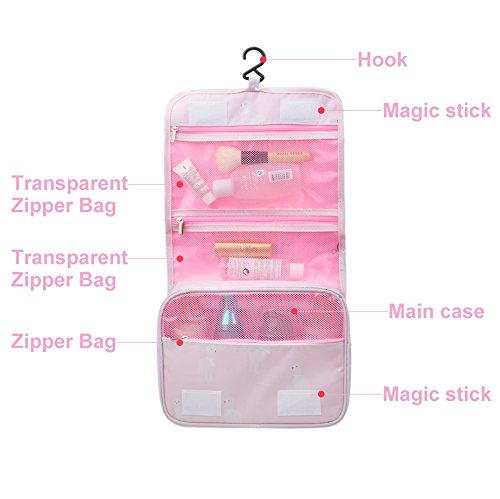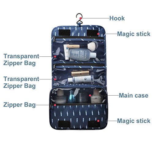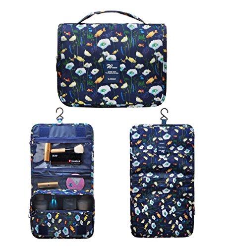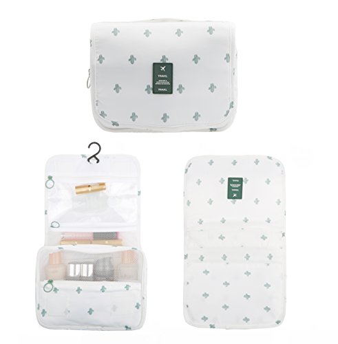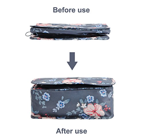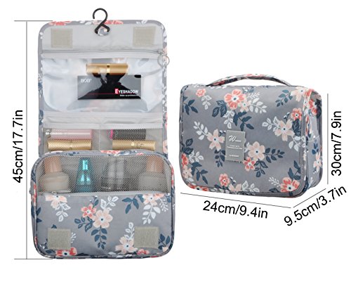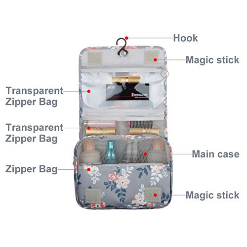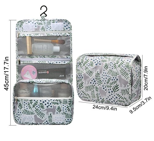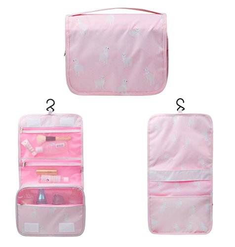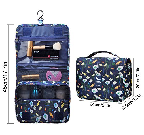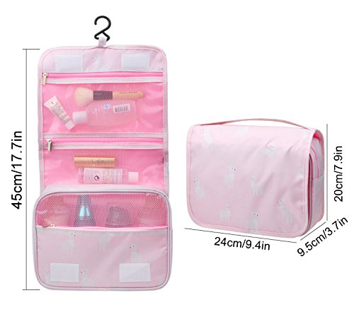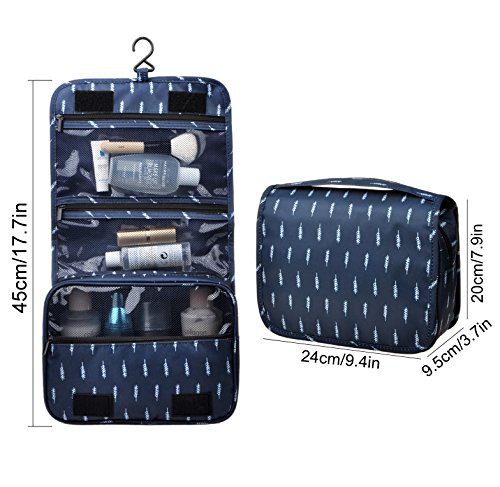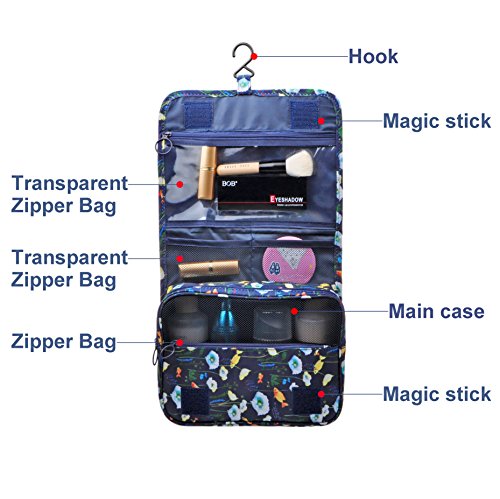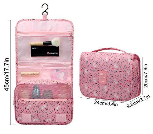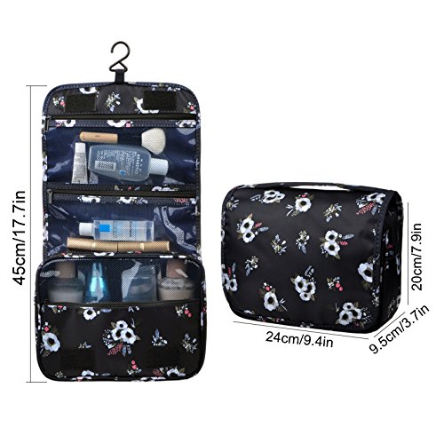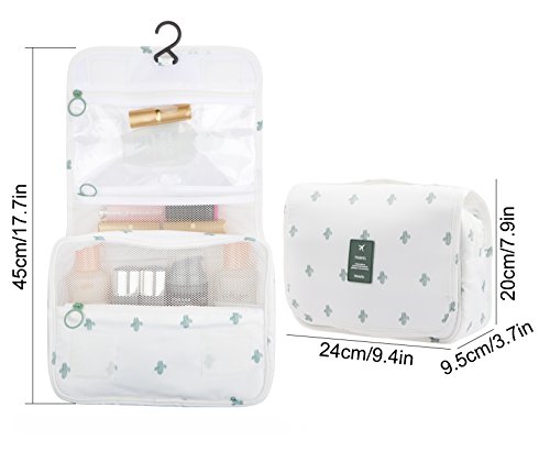 Feature: - Stores all your essential Toiletries/Cosmetics in one single bag. - This Cosmetic Bag is made of high density Oxford cloth which is waterproof, durable and scent free. - Size: 9.4"*7.9"*3.7". - Fits travel size and normal size toiletries in mesh pockets. - Easily stored into your check-in Luggage. - Bulit-in durable hook to simlify your daily life. - Can be hung on the towel rack, behind the bathroom door or inside a cupboard. easy to place and reach things within.