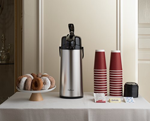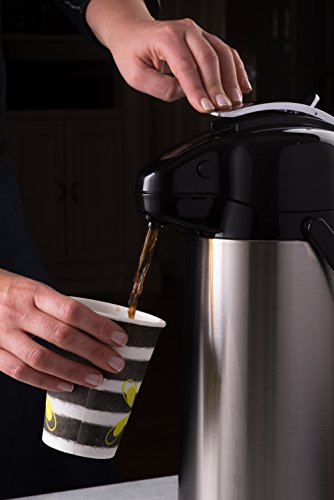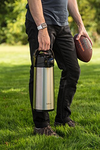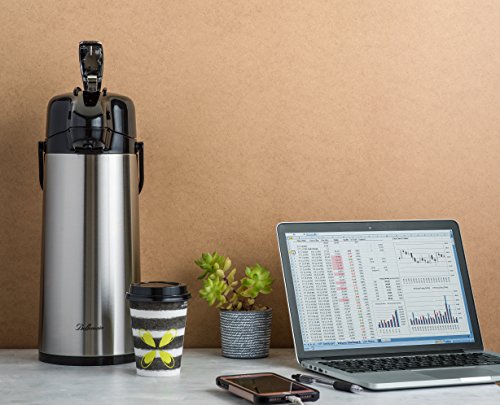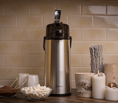 Studio : EPI Publisher : EPI Product Description Let family, guests and co-workers serve themselves cup after cup of delicious, hot coffee from the Bellemain Stainless Steel Airpot. Both you and they will appreciate its quality, convenience and safety. Keeps Coffee Hot Up to 8 Hours Double wall construction with a vacuum between the walls keeps the heat where you want it: inside the pot. Simply brew your favorite coffee in your coffeemaker and pour it in. Cool Touch Exterior Vacuum insulation also prevents heat from reaching the stainless steel outer wall, so there's no risk of burned fingers. Pure Coffee Flavor The Bellemain Airpot's inner wall is made of glass, the preferred choice of coffee connoisseurs because it doesn't leach metal or plastic tastes into the coffee. Easy One-Hand Dispensing No need to struggle with lifting or tilting the pot. Just press the top lever to deliver the coffee from the spout into your cup. Easy Filling and Emptying The Bellemain Airpot's wide mouth simplifies the jobs of adding the coffee and cleaning the pot at the end of the day. Convenient Carrying Handle If you're transporting the Airpot to a potluck event, church social, the office or simply another room in your home, lift it by the handle for safe travels. 3 Year Warranty The Bellemain Stainless Steel Airpot is designed and manufactured for exceptional performance, quality and reliability. If you're not satisfied in any way, it's backed by a full replacement guarantee. 0