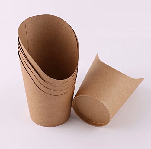 Cindy&Will 50Pcs Disposal Take-out Party Frozen Dessert Supplies Baking Cakes Egg Puff Waffle French Fries Chips Ice Cream Snacks Kraft Paper Cups Holder, 14oz