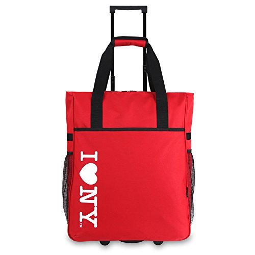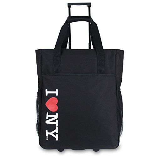 -. Binding : Apparel -. Brand : J World New York -. Department : unisex-adult -. Feature : Telescoping double handle / Front utility pocket / Padded top grip handle / Mesh side pockets / 15.5x20x8 -. Label : J World New York -. Manufacturer : J World New York -. Model : NYRB-20 -. MPN : NYRB-20 BLACK -. PackageQuantity : 1 -. PartNumber : NYRB-20 BLACK -. ProductGroup : Apparel -. ProductTypeName : LAGE -. Publisher : J World New York -. Size : One Size -. Studio : J World New York -. Title : J World New York I Love New York Rolling Tote Bag
