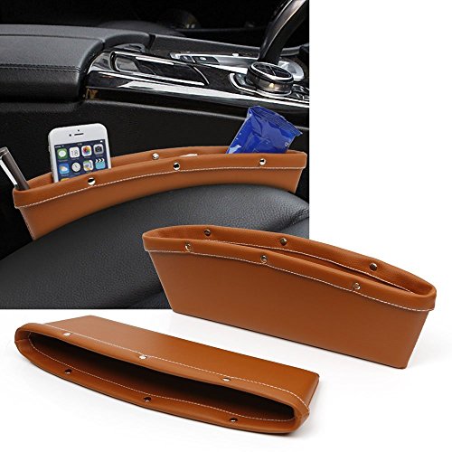 -. Feature : Are you sick of you wallets and phones falling between the seat? / The car organizer dimension is 11.5 x 3.9 x 1.9 inches . Fits most cars with gap size between 0.75 - 1.5 inches. You do need to measure that gap between the seats and the console to ensure a good fit. / Console side pocket material : high quality PU leather / You can put a pack of Velcro Strips to prevent it slipping down if the gap between your seat and console is too wide. But, on the driver's side it does move slightly when you adjust your seat but it's not that big of a deal. / Package included 2pcs car seat catcher.