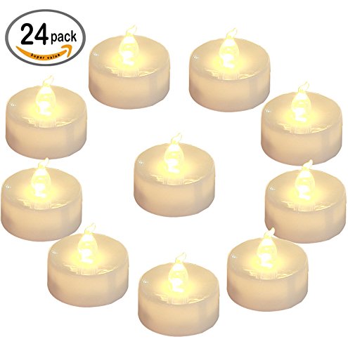 Homemory Battery LED Tea Lights, Pack of 24, Flameless Tealight Candle with Warm White Flickering Light, Dia 1.4’’ Electric Fake Candle for Votive, Wedding, Party, Table, Diningroom, Gift
