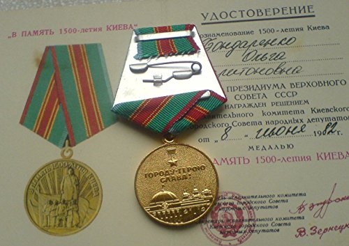 In memory of 1500 anniversary of Kiev USSR Soviet Union Russian Military Medal Bondarenko