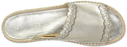 Product DescriptionA slip-on espadrille sandal featuring asymmetrical topline and pearl embellishment.0
