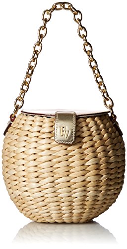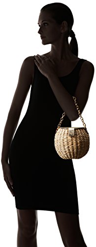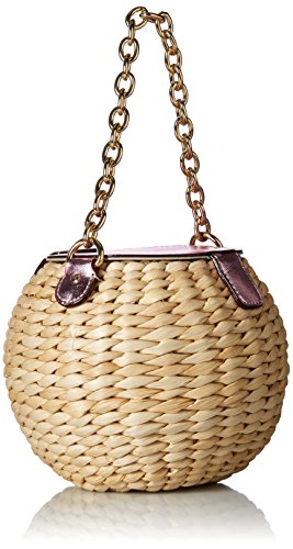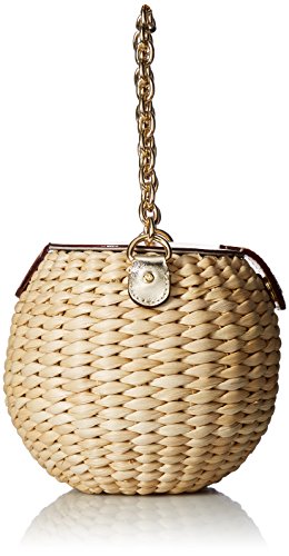 Product DescriptionMini woven bucket bag with chain handle and magnetic leather trim0