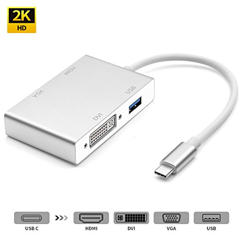-. Feature : MULTI VIDEO ADAPTER: USB C to HDMI USB C to VGA, USB C to DVI and an USB 3.0 port. (Notice: Do not support NETFLIX, Amazon P.R.Ime paid video) / PLUG & PLAY: No need drive. With this USB C HDMI digital AV adapter you can share video, pictures with your family and friends in big screen. / RESOLUTION AND TRANSMISSION RATE: HDMI: 1920*1080P@60Hz, VGA:1920*1080P@60hz, DVI:1920*1080P @60hz high quality video output. HDMI & VGA, DVI & VGA ports can work at the same time. (Notice: HDMI & DVI ports can't work at the same time) / COMPATIBLE WITH: The USBC hub HDMI support Macbook 2015/2016/2017, Google Chromebook and other USB type C port laptop. Notice: Do Not support USB C smart phone. / COMPACT DESIGN: The USB C to VGA adapter is 2.95*1.97*0.59 inch in dimension, portable and easy to store. Aluminium alloy shell, elegant and durable.