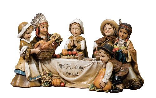 JOSEPH'S STUDIO PILGRIM AND INDIAN KIDS AT TABLE FIGURINE WE ARE TRULY BLESSED