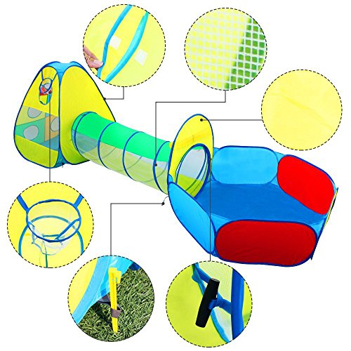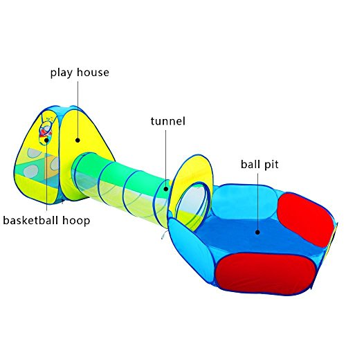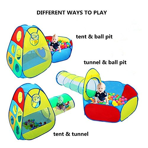 Studio : Mochi Baby Publisher : Mochi Baby Binding : Toy Product Description Packing List: 1 x Play Tent: 33"(L) X 33"(W) X 39"(H) 1 x Tunnel: 19"(D) X 59"(L) 1 x Ball pit: 47"(L) X 40"(W) X 31"(H) 1 x Zippered storage bag: 20"(D) How to use: Open the packaging and carefully to expand it. Note that the product will quickly bounce open. Pay attention to product folding method. Age acquirement: 6 months and up. Kindly notice: A steel ring inside the product, when used quickly bounce, children should be used under adult supervision and guidance. The product can not load, do not place heavy objects on the product. Please put away the packaging and accessories, to avoid injury when children play. Play balls are not included.