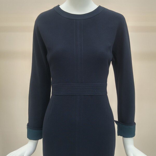 나그랑어깨로 편안한 착용감을 주는 정장원피스입니다. 조금 도톰한 소재이며 스티치장식이 깔끔하면서도 고급스럽습니다.