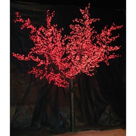 This cherry tree is a beautiful and elegant product. Its vibrant color can make quite a splash as part of Christmas decorations, yet the black trunk and lights would be a great Halloween accessory as well. It stands at approximately 8' tall and has Red LED lights embedded in each of the 2304 leaves. The trunk and branches are black with a solid metal base to keep it secure. The flexible branches allow you to easily shape the tree to your liking. Can be used alone or combined with other cherry trees to create a forest-like setting.