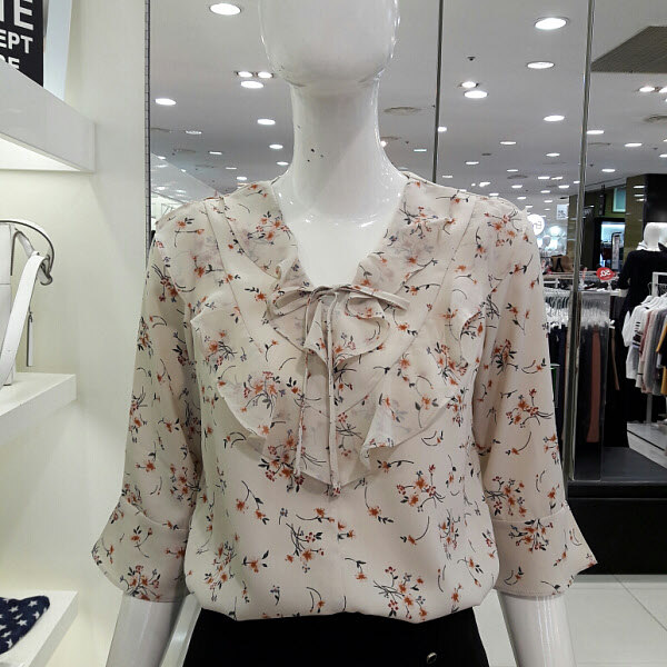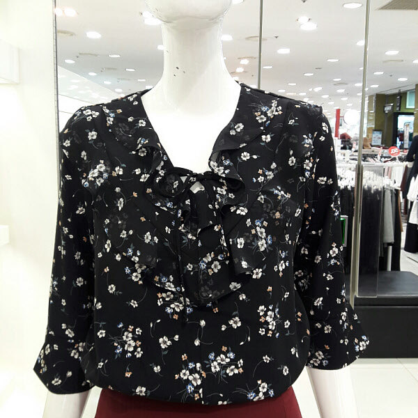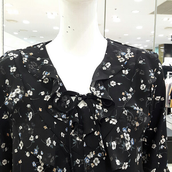17년 신상 F/W블라우스입니다 플라워패턴과 은은한 칼라감이 여성스러우면서 고급스러움을 더해줍니다 목선 이중 프릴과 리본으로 한번 더 포인트를 준 사랑스러운 느낌입니다 7부소매로 활동이 편하며 스커트 슬랙스에 모두 잘 어울려요
