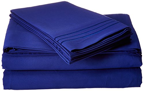 -. Binding : Misc. -. Brand : Elegant Comfort -. Color : Royal Blue -. EAN : 0053176579078 -. Feature : 1 Flat Sheet (102" x 105") 1 Fitted Sheet (78" x 80") and 2 Standard Pillow Cases (20" x 40") / Fits mattresses up to 14" - 16" deep with elastic all around the fitted sheet / Micro fiber sheets are as soft as 1,500 thread count Egyptian cotton / Easy care sheets are machine washable and require no ironing / Elegant Comfort - High Quality and has a breathable weave -. Label : Elegant Comfort -. Manufacturer : Elegant Comfort -. Model : 1500-King- Royal Blue -. MPN : 404RW- 1500-King- Royal Blue -. PackageQuantity : 1 -. PartNumber : 404RW- 1500-King- Royal Blue -. ProductGroup : Home -. ProductTypeName : HOME -. Publisher : Elegant Comfort -. Size : King -. Studio : Elegant Comfort -. Title : Elegant Comfort 1500 Thread Count Egyptian Quality 4-Piece Bed Sheet Sets with Deep Pockets, King, Royal Blue -. UPC : 053176579078