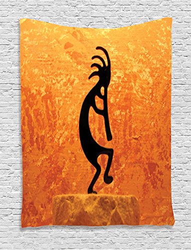 Ambesonne Kokopelli Decor Collection, Kokopelli Southwestern Style Native American Indian Ancient Belief Picture Art, Bedroom Living Room Dorm Wall Hanging Tapestry, Orange Black