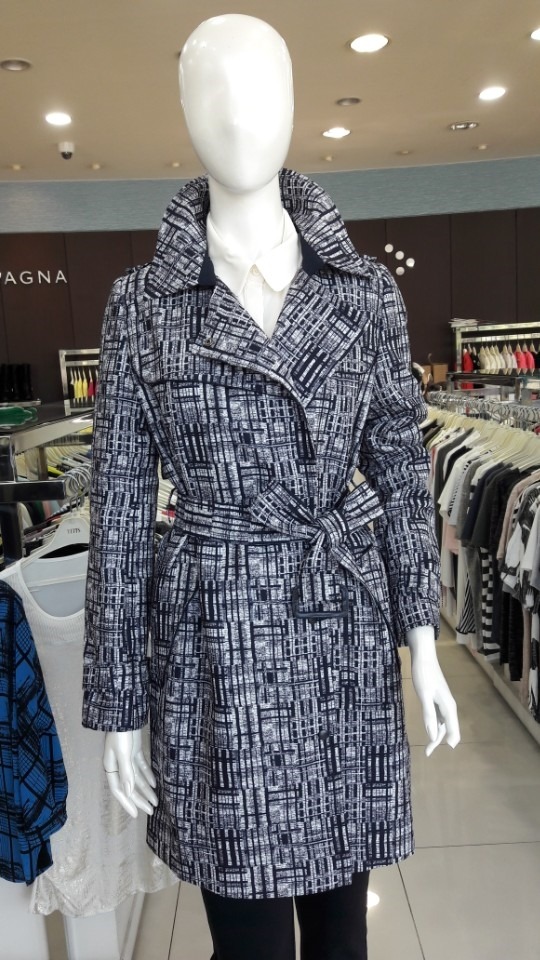멀티컬러 프린트 비조장식 트렌치코트