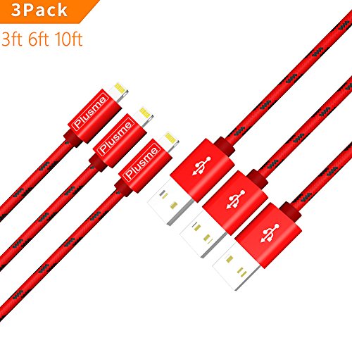 -. Title : Lightning Cable,Plusme iPhone Charger Cable 3Pack 3FT 6FT 10FT Nylon Braided to USB Data Syncing and Charging Cord for iPhone X/8/8Plus/7/7 Plus/6/6 Plus/6s/6s Plus/5s/SE,iPad, iPod