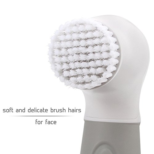 FOUR ATTACHMENTS: Electric spa body and facial brush comes with 4 interchangeable attachments; a facial brush, body brush, face sponge and pumice
