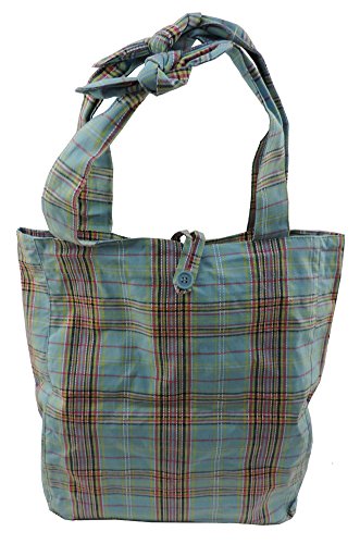 100% Cotton Blue Plaid Beach Tote Bag