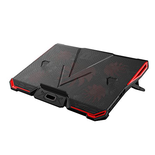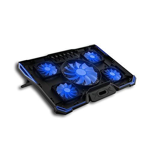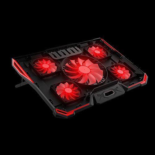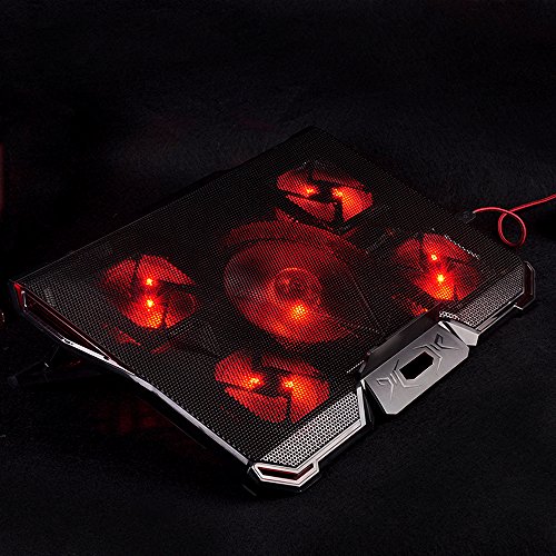 -. Binding : Electronics -. Brand : KKmoon -. Feature : High-quality and long-lasting. / Eye-catching red and blue LED light optional, providing an outstanding look. / Ergonomic design for its adjustable height setting, comfortable for natural point of view. / Slim, lightweight and portable, allowing you to cool your laptop wherever you go. / Optimized heat dissipation effect. -. Label : KKmoon -. Manufacturer : KKmoon -. PackageQuantity : 1 -. ProductGroup : CE -. ProductTypeName : CONSUMER_ELECTRONICS -. Publisher : KKmoon -. Studio : KKmoon -. Title : KKmoon 5 Fans Portable Laptop Cooling Pad LED Light Dual 2.0 USB Port Cooler Fit for Above 17 Inch Notebook Heat Dissipation Cooler
