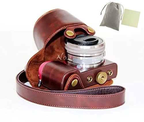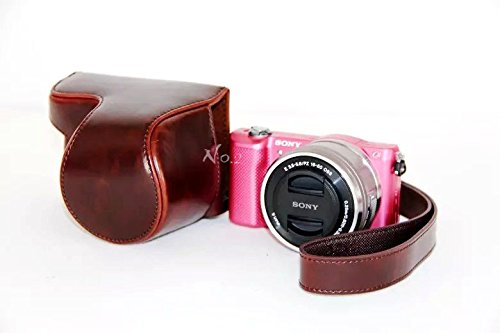 No.2 Warehouse Protective PU Leather Camera Case Bag For Sony Alpha A5000 A5100 NEX-3N 16-50mm lens (dark brown)+ a Piece of Clean Cloth