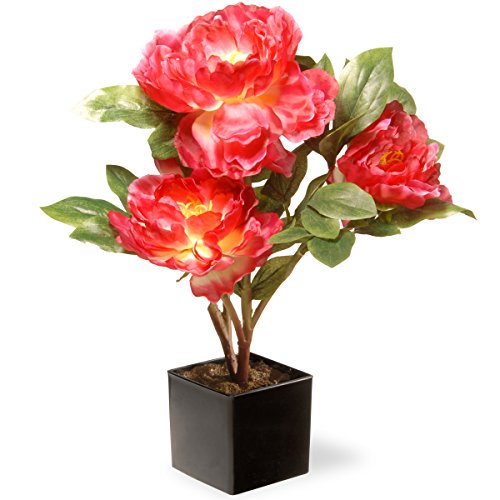 National Tree 15 Inch Fuchsia Peony Flowers with Black Square Ceramic Base (NF36-5128D-1)
