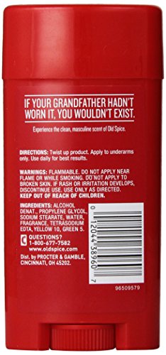 -. Binding : Health and Beauty -. Brand : Old Spice -. EAN : 0012044389607 -. Feature : Increases your awesomeabilityness. / If your Grandfather hadn't worn it, you wouldn't exist / You know the smell of fear? It is the opposite of that smell. / Plants a flag of fragrance high atop your man mountain / Increases your ability to sense other dimensions. -. IsAdultProduct : 0 -. Label : P&G -. Manufacturer : P&G -. Model : NA -. MPN : 1204438961 -. NumberOfItems : 6 -. PackageQuantity : 6 -. PartNumber : 1204438961 -. ProductGroup : Beauty -. ProductTypeName : BEAUTY -. Publisher : P&G -. ReleaseDate : 2011-02-28 -. Studio : P&G -. Title : Old Spice Classic Stick Fresh Scent Men's Deodorant 3.25 Oz (Pack of 6) -. UPC : 885176921706
