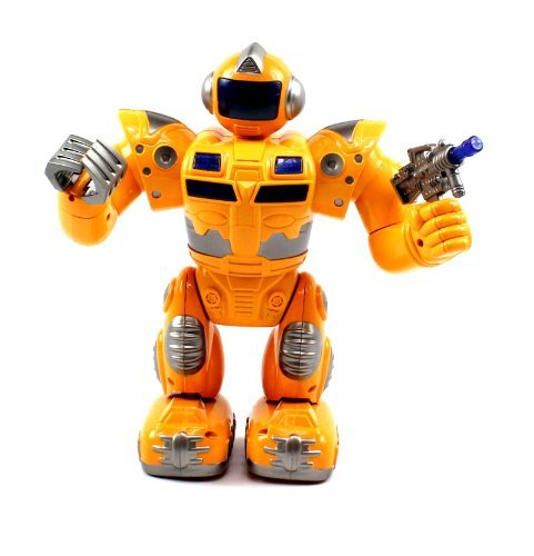 -. Binding : Toy -. Brand : Toy Robots -. EAN : 0617390307727 -. Feature : Features: Battery Operated Flashing Lights Plays Sounds / Realistic Walking Action! Head Turns While Walking! / Arms can Move and Swing Around Left Hand Holds Gun Right Hand can Open and Close / Requires 4 AA Batteries to run (not included) / Length: 3.5" Width: 7.5" Height: 9.5" -. Label : Toy Robots -. Manufacturer : Toy Robots -. ProductGroup : Toy -. ProductTypeName : TOYS_AND_GAMES -. Publisher : Toy Robots -. Studio : Toy Robots -. Title : Super Robot Electric Toy Figure Flashing Lights, Plays Sounds -. UPC : 617390307727