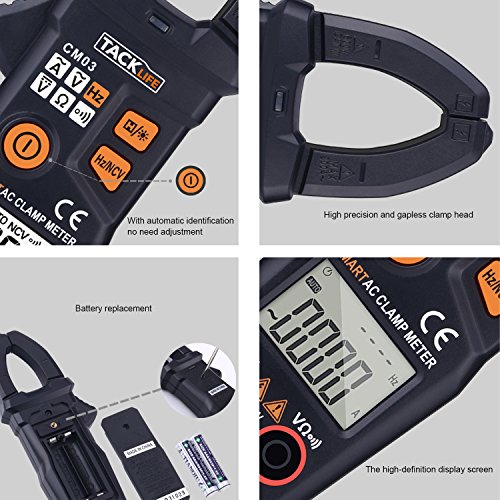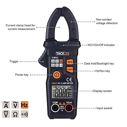 Digital Clamp Meter, Tacklife CM03 Auto-Ranging 6000 Counts Multimeter for AC/DC Voltage, AC Current, Frequency, Resistance, NCV, AC signal frequency, with LCD Backlit Display