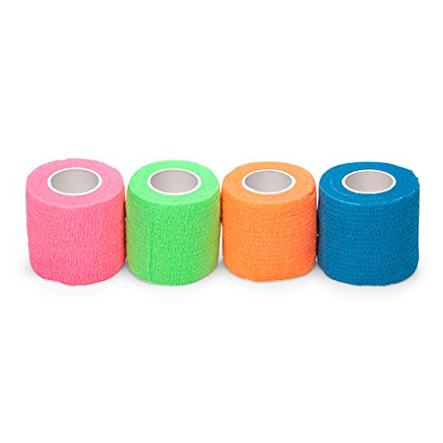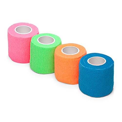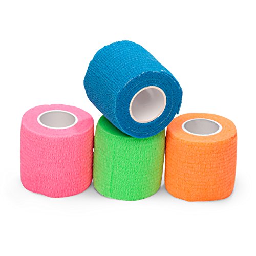 - SET OF 4 IN NEON COLORS: Value pack, each roll is individually poly bagged and measures 2 inches in width and 5 yards in length. Use to protect any body part; works well on ankle, wrist, finger, toe, elbow and knee. Also safe for pets.a