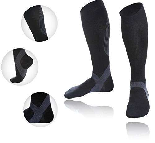 HIGH FIT Pro Compression Socks with Triangle of Support; Arch ; Ankle & Calf – Enjoy Enhanced Performance & Faster Recovery. Offers EXTRA STRONG Compression and Support (1 Pair)