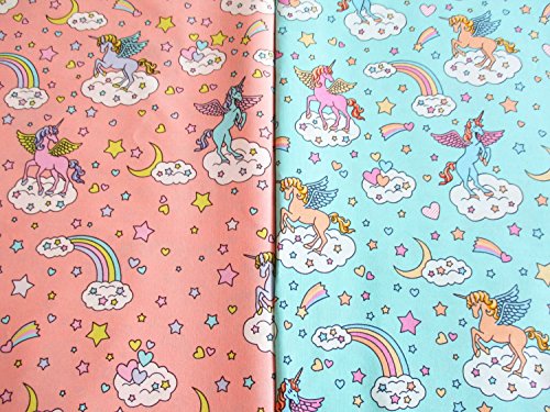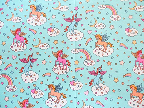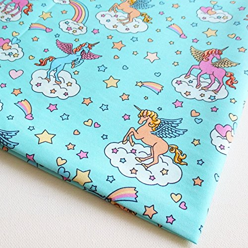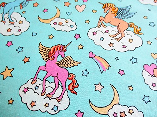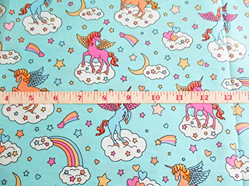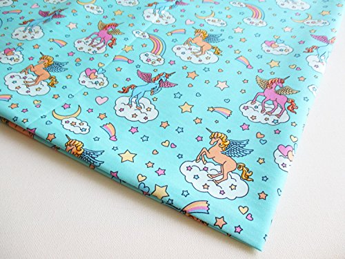 Sweety Unicorn Little Pony Horse on Blue 36 by 36-Inch Wide (1 Yard) (CT470)
