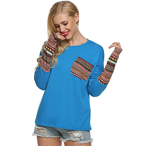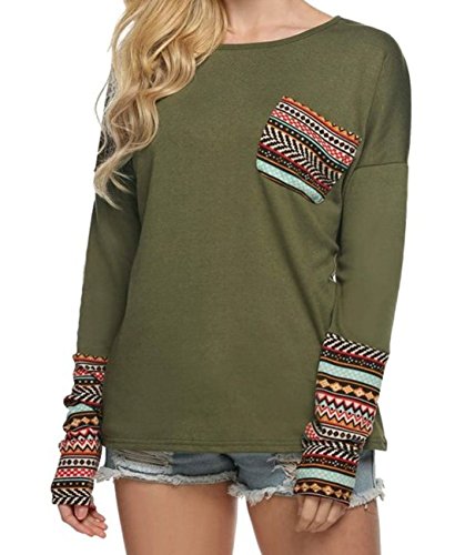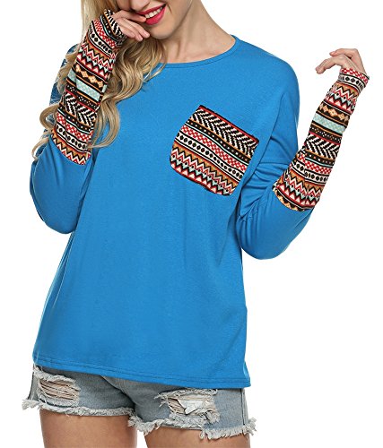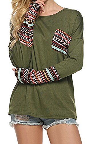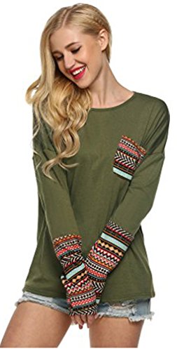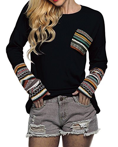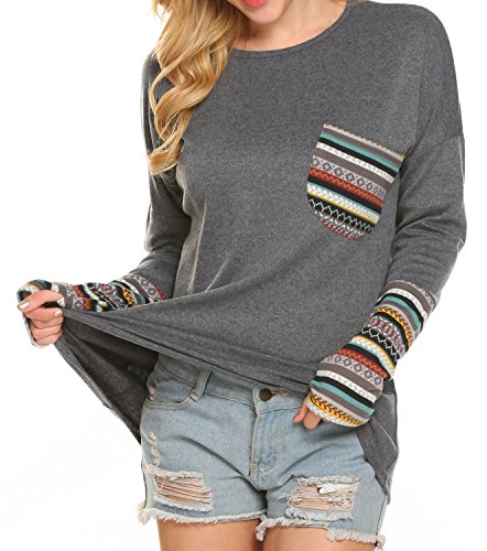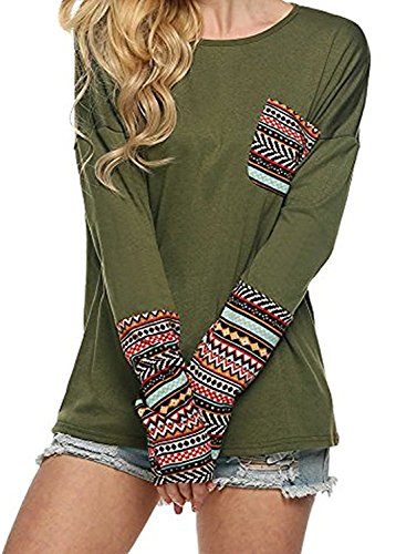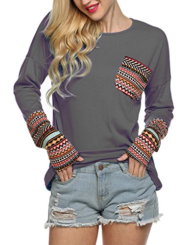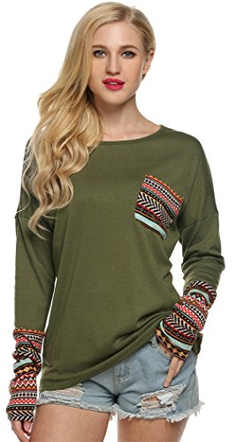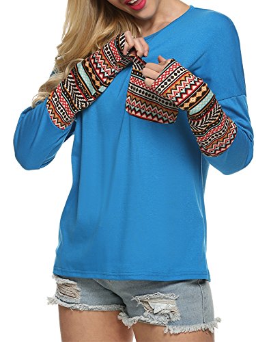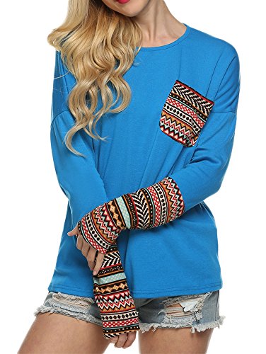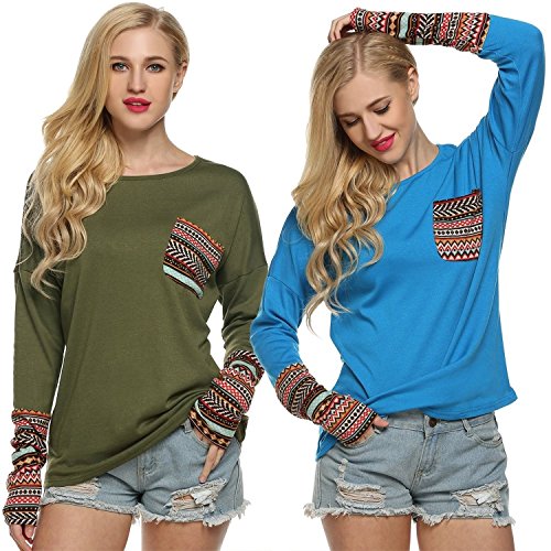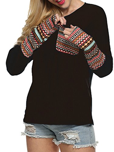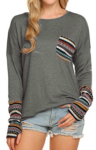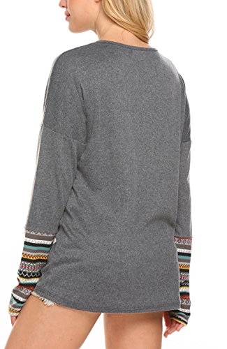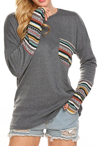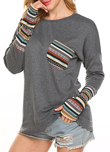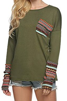 | POGT Women Long Sleeve O-Neck Patchwork Casual Loose T-shirt Blouse Tops |