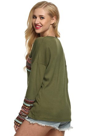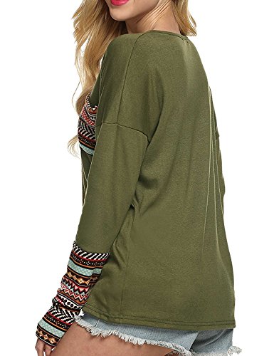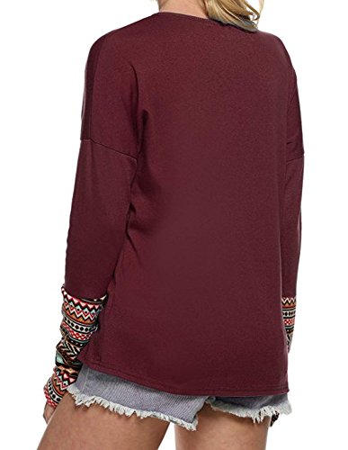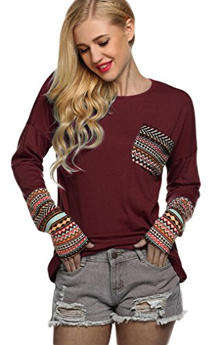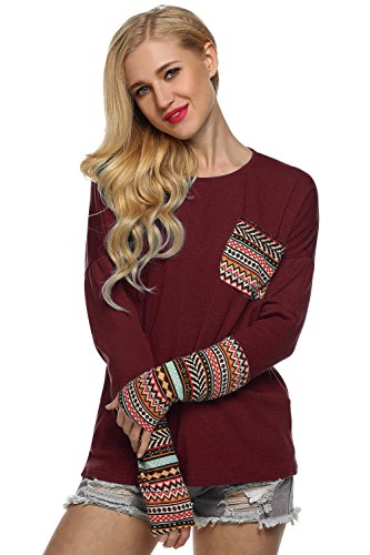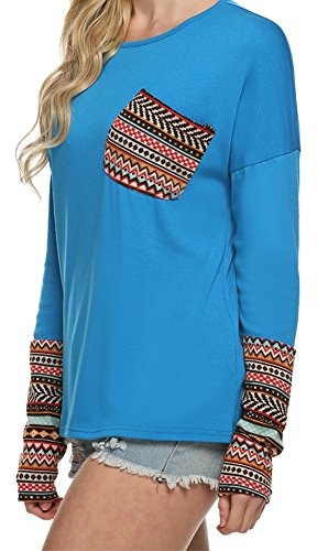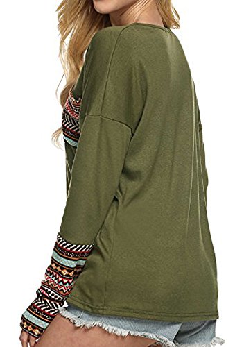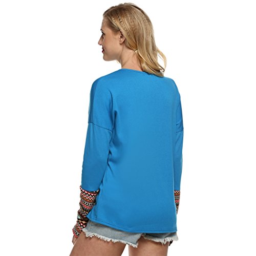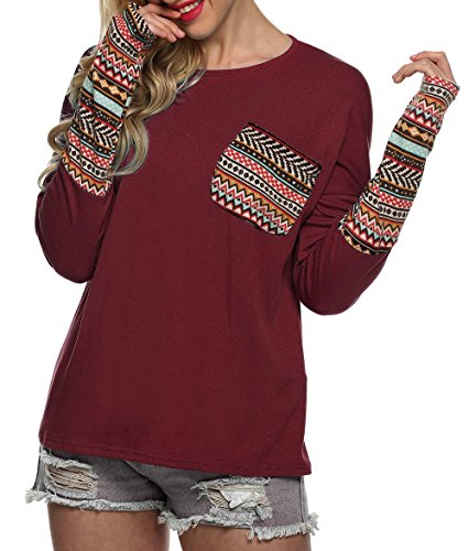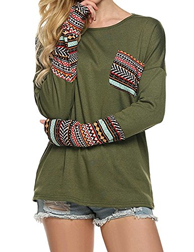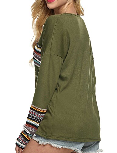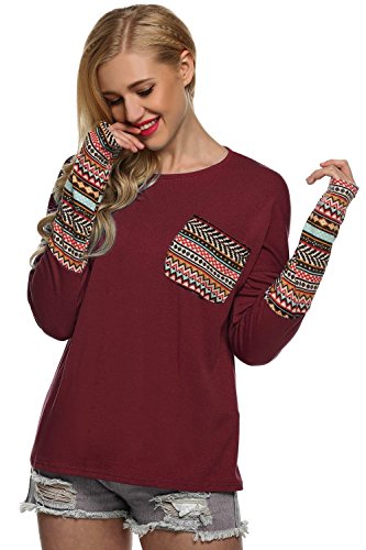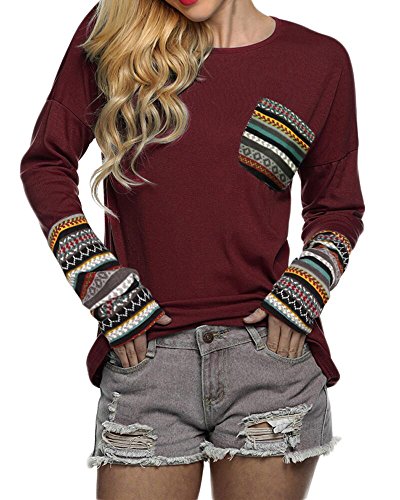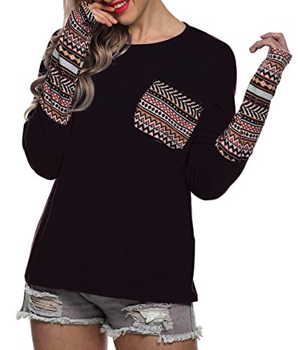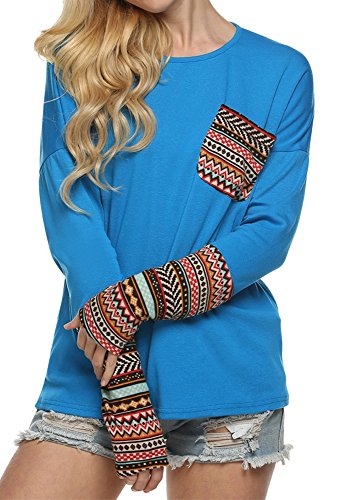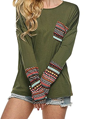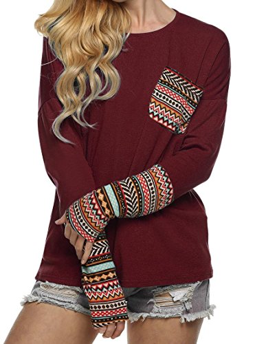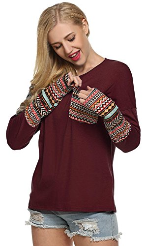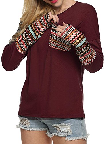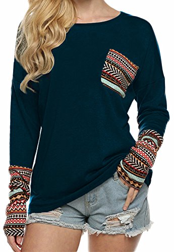 | POGT Women Long Sleeve O-Neck Patchwork Casual Loose T-shirt Blouse Tops |