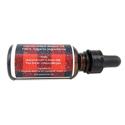 - INGREDIENTS: This beard oil for men is handcrafted with 100% organic: almond oil (keeps inflammation at bay, which particularly helps prevent in-grown hairs), jojoba oil (similar to your natural human oils and is easily absorbed by your skin), argan oil (makes skin softer and protects against signs of aging like wrinkles), and essential oils (prevents acne & skin irritation, and repairs damaged hair).