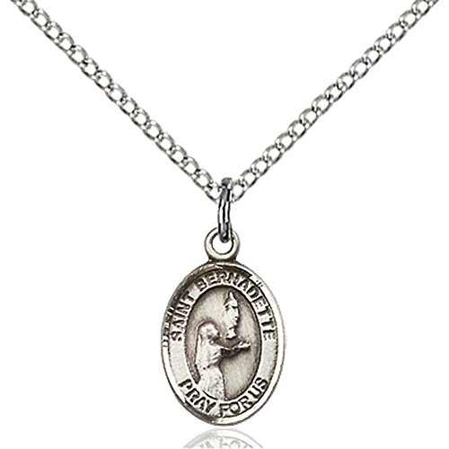 -. Title : Sterling Silver St. Bernadette Pendant 1/2 x 1/4 inches with Sterling Silver Lite Curb Chain