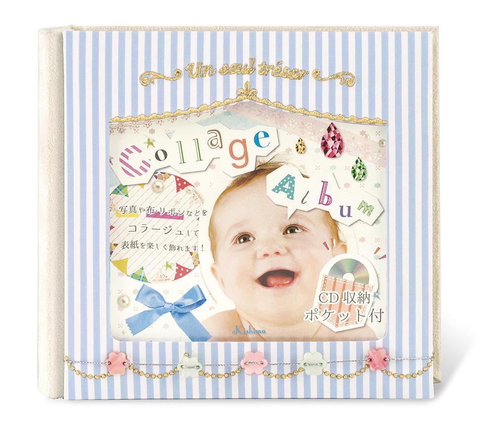 | 外国のドールシアターのような雰囲気が素敵なベビーアルバム。同封してある台紙にお好みの写真やシールなどをコラージュして表紙の窓にセットすれば、自分だけのアルバムが完成!!写真データの管理に便利なCD収納ポケット付きです。 |