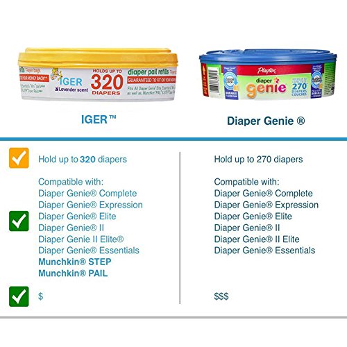 Why IGER Diaper Genie Refill is the BEST choice for you? • Imported Material • High-capacity refills hold more diapers than big name brands • Convenient 4-pack bundles that last up to 6 months • These 7 layers work together to help stop diaper odors and messes • Less expensive than Playtex Diaper Genie refills without sacrificing quality • Guaranteed to fit major pails