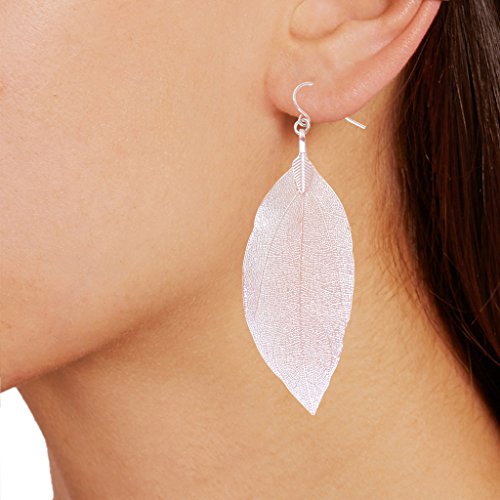 Inspired by nature, these one-of-a-kind leaf dangle earrings feature realistic details. These statement drop earrings will pair equally well with day or evening looks. Shapes and sizes may vary. Approximate Leaf Measurements: 2.5 - 3.5 inch length, 1 - 1.25 inch width.