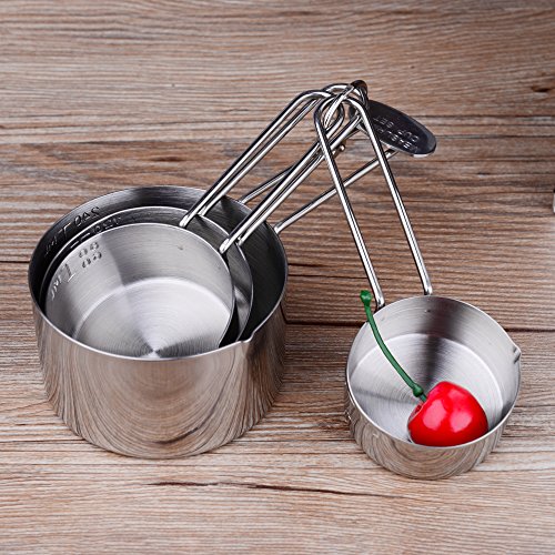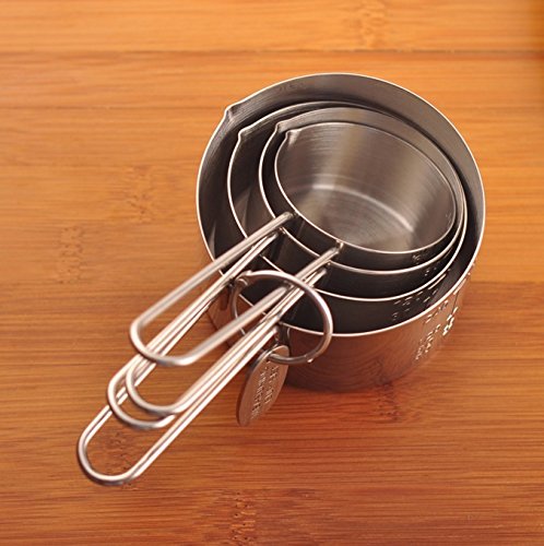 IMEEA 4-Piece Premium 18/8 Stainless Steel Measuring Cups Set for Liquid, Powder and Granules