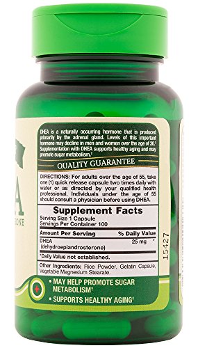DHEA is a naturally occurring hormone that is produced primarily by the adrenal gland. Levels of this important hormone may decline in men and women over the age of 30. Supplementation with DHEA supports healthy aging and may promote sugar metabolism. These statements have not been evaluated by the Food and Drug Administration. This product is not intended to diagnose, treat, cure or prevent any disease.Feature