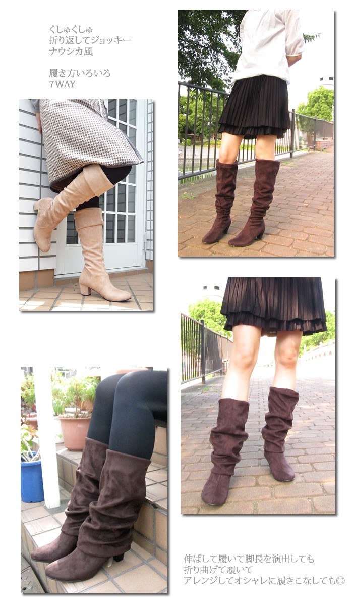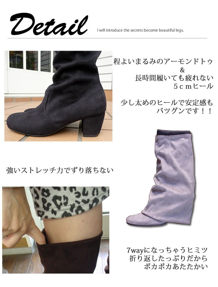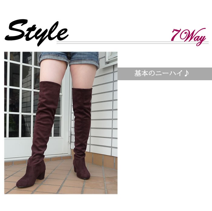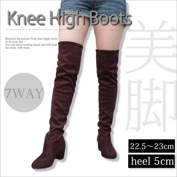 長時間履いても疲れない5cm太ヒールのストレッチニーハイブーツ♪