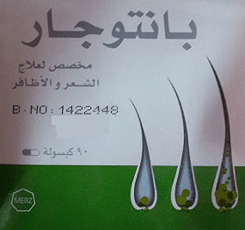 Pantogar (Pantovigar) Capsules for Hair Loss, Alopecia and Nail Problems / 270 capsules for 3 month, Made in Egypt under Merz licences, Fresh stock with expiry years later / Attricative box design Pantogar is a highly effective hair therapeutic for treatment of diffuse hair loss, diffuse alopecia and for hair structure lesions. Via cellular metabolism, its special combination of amino acids, proteins and vitamins of the B group supplies hair with the nutrients required for its growth and for building up a firm, elastic structure. The efficacy of Pantogar has been documented in comprehensive scientific studies: Pantogar significantly reduces hair loss, stimulates healthy hair growth and improves hair quality and resistance. And it is excellently tolerated. Improves: Male diffuse hair loss Female diffuse hair loss Hair Damage / Hair structure lesions Nail growth disturbances Active ingredients: Vitamin B1 Calcium D-pantothenate Vigar-yeast L-Cystine Keratin Para-aminobenzoic acid Pack Size: 90 capsules for 1 month Dosage: 3 capsules a day (to be taken with a little liquid) Recommended Treatment: 3 months minimum / 6 months recommended for full benefits.