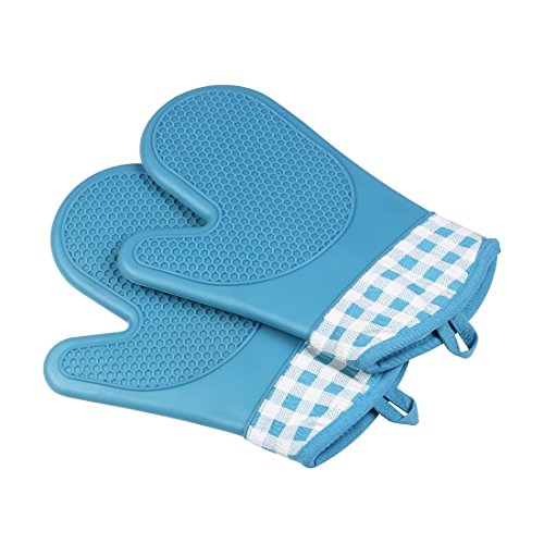AooFit Silicone Oven Mitts Heat Resistant Kitchen Mitts Blue Kitchen GlovesNon-slip Cooking Glove