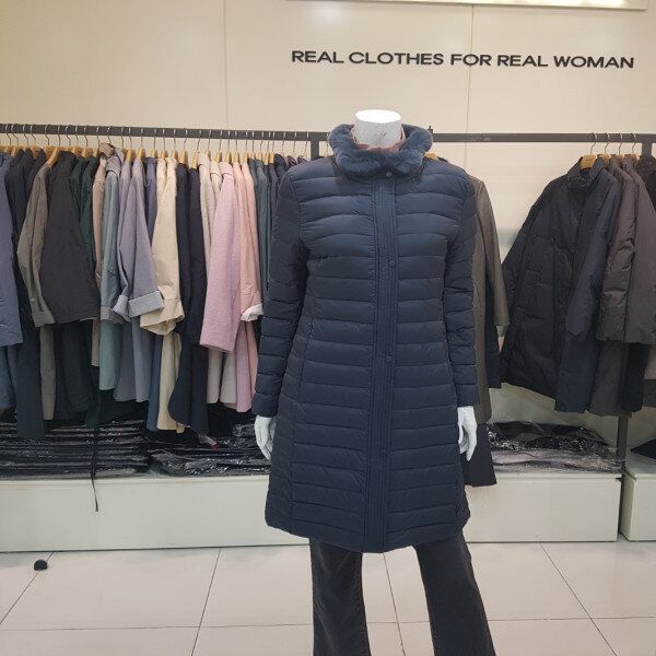 거위솜털 깃털로 카라에 토끼털로 부착된 가벼운 경량패딩
