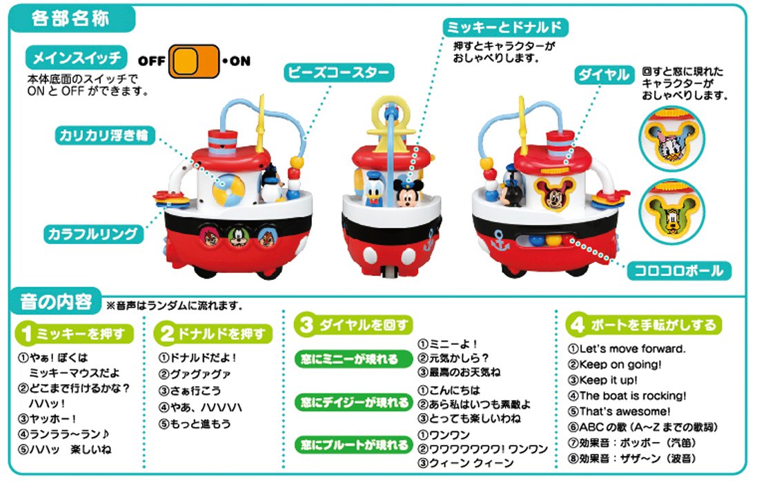 English and fun sound comes out in accordance with the movement of the moving boat! It is a baby tie that makes you want to play repeatedly!