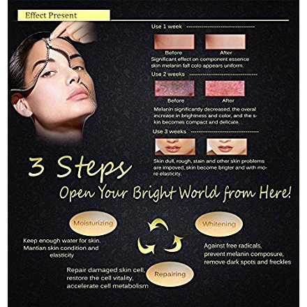 -. Feature : Lighten and brighten skin tone / Energizing and hydrating skin / Made from exclusive ingredients / Melanin production / Fights against melanin oxidation