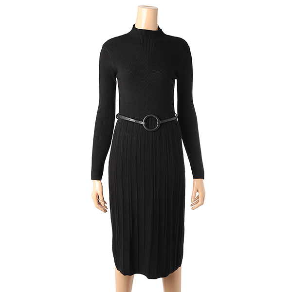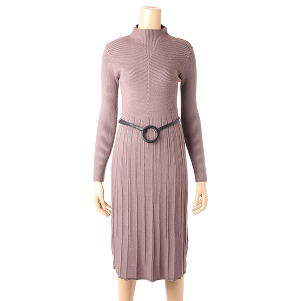 벨티드 세트 디자인의 여성스럽고 우아한 스타일의 니트 원피스입니다.